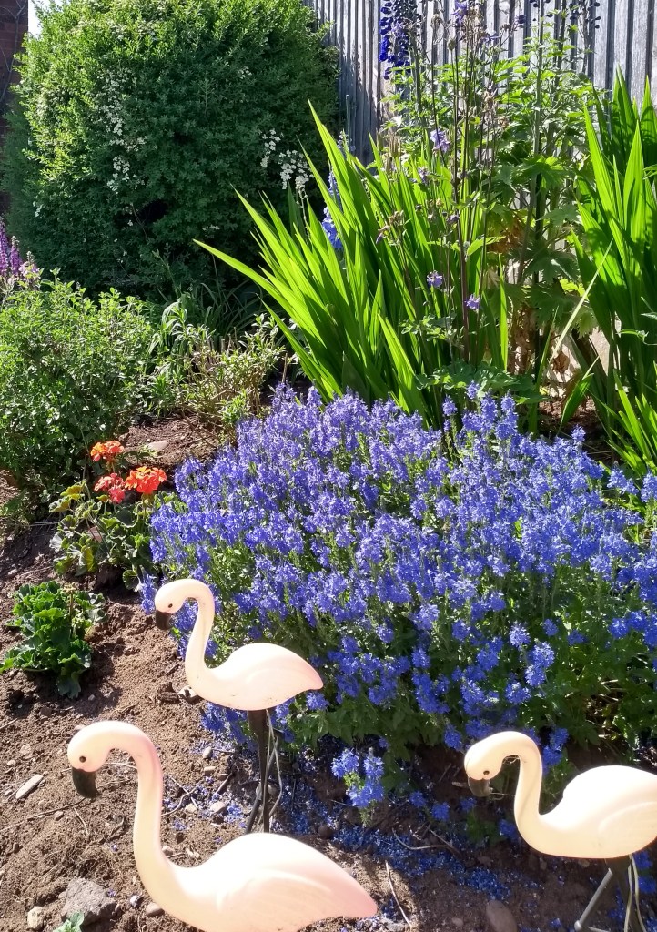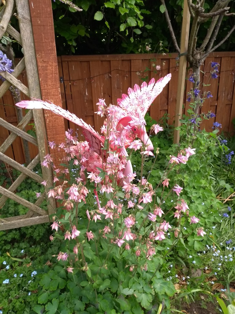 Such a lovely spot to write in – I do love a view. I can also see the Clent Hills from my office window, but from the opposite side to Lynn! And, as I’m up in the attic, I see a lot of the sky and clouds 🙂 Lynn’s garden looks lovely, doesn’t it, and the flamingos seem very much at home there. They’re a great reminder of the fun and sunshine in her wonderful books.