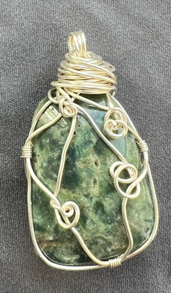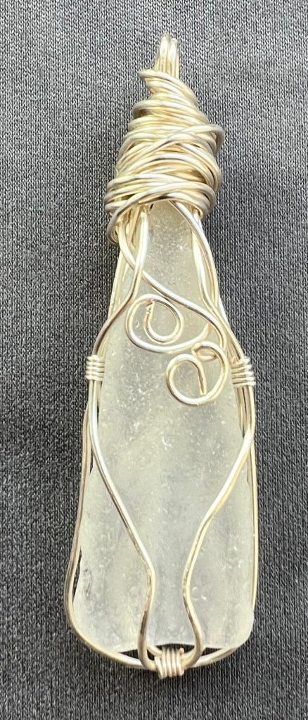 I also made more wire wrapped pendants this week and I’m especially pleased with a sea glass one.